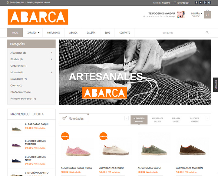 La tienda online está en continua actualización, con nuevos productos y contenidos que son compartidos en las distintas redes sociales que tiene la marca. En todo el contenido de la web consiguen mantener el equilibrio entre los valores comentados anteriormente, aportando información e imágenes sobre el proceso artesanal de fabricación y mostrando los productos a la venta en composiciones actuales y modernas. En todo caso, se observa una cuidada manera de hacer las cosas que nos lleva a reafirmar nuestra consideración de caso de éxito al proyecto que representa Abarca.