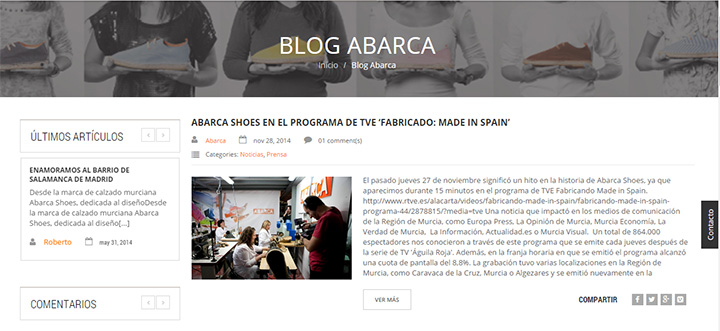 Abarca está realizando una labor online de divulgación de sus valores (innovación dentro de la tradición) en la que destaca su buen trabajo con el blog corporativo y las actividades de promoción que realizan, lo que les ha llevado a aparecer recientemente en el programa de RTVE “Fabricando Made in Spain” que emite La 1.