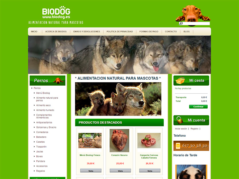 La tienda online Biodog nace siguiendo los principios de la alimentación biológicamente correcta para perros en la que todos sus productos son 100% naturales. Esta empresa surgió con el propósito de ofrecer una alimentación saludable para perros basada en comida natural, ya que el canino por naturaleza es carnívoro y así ha de alimentarse para obtener un crecimiento óptimo y saludable.