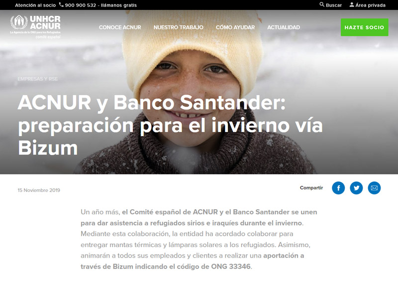 Campaña de ACNUR y Banco Santander mediante Bizum