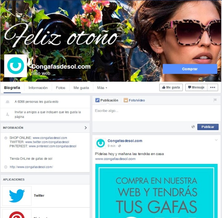 El enfoque estratégico de cara a la exposición de la marca congafasdesol.com pasa por una presencia muy activa y controlada en redes sociales, lo que les permite permanecer ante la vista de su público objetivo de manera continuada. Encontramos perfiles sociales de actualización constante en Twitter, Facebook, Pinterest e Instagram con un target muy definido: gente joven con poder adquisitivo medio/alto y gusto por la moda.