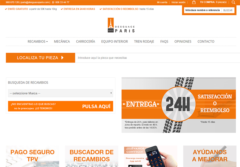En este caso de éxito nos vamos a centrar en la parte actual de Global París que comercializa sus productos mediante comercio electrónico: Desguace París.