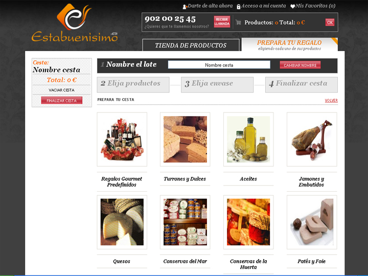 Además de la tienda online estándar, Estabuenismo.es incorpora una sección para realizar cestas o paquetes a medida con el nombre "Prepara tu regalo", permitiendo seleccionar cualquier producto de su catálogo y un envase de presentación.