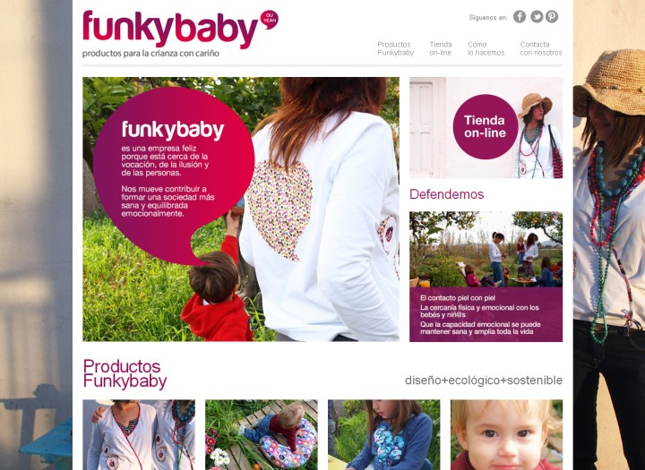 FunkyBaby es un portal web dedicado a defender la cercanía física y emocional y los métodos afines a pedagogías alternativas, desde un punto de vista del comercio electrónico con un fin más humano y cercano.