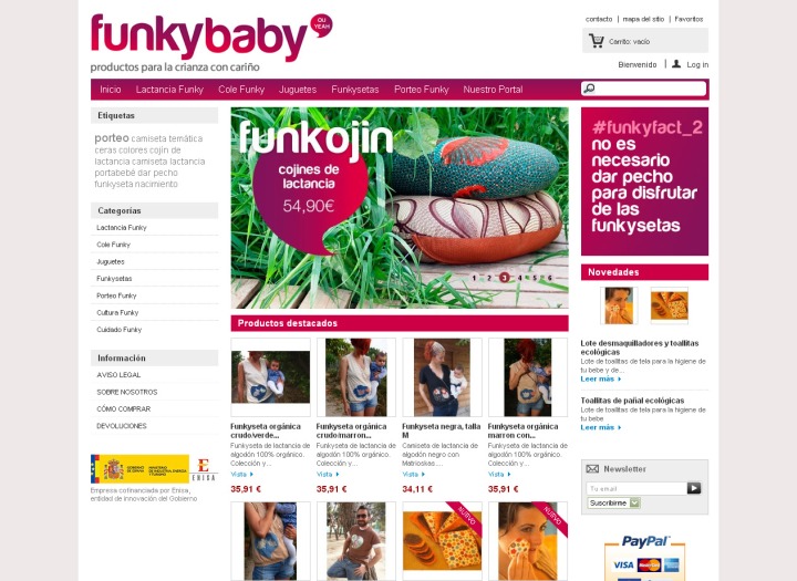 Encontramos una sección de productos destacados en la página principal que nos ofrece las últimas novedades disponibles en FunkyBaby, lo que nos permite contemplar de un solo vistazo la variedad de productos que posee.