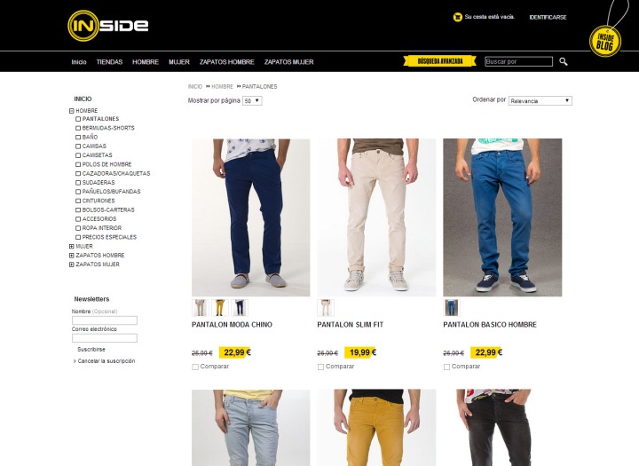 La tienda online de INSIDE tiene una estructura clara y sencilla. Destaca en su portada el banner donde se presentan las novedades del momento y también que está disponible en versión móvil.
