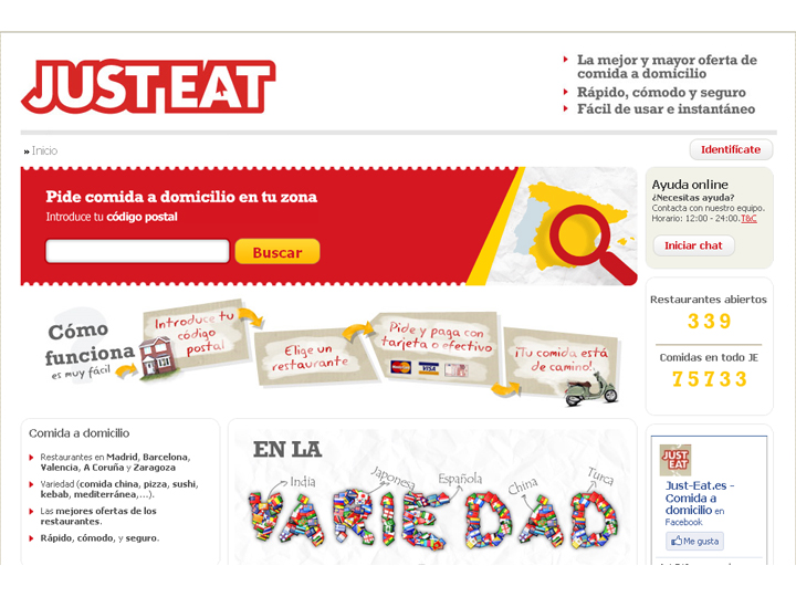 El éxito de Just-eat.es reside en la facilidad y comodidad de su sistema para realizar un pedido a domicilio de restaurantes habitualmente conocidos por el usuario, por encontrarse en su zona de influencia, la posibilidad de localizar las mejores ofertas de los restaurantes en una determinada zona y la variedad gastronómica que ofrece: desde comida china hasta pizza, sushi, kebab, comida mediterránea, etc.