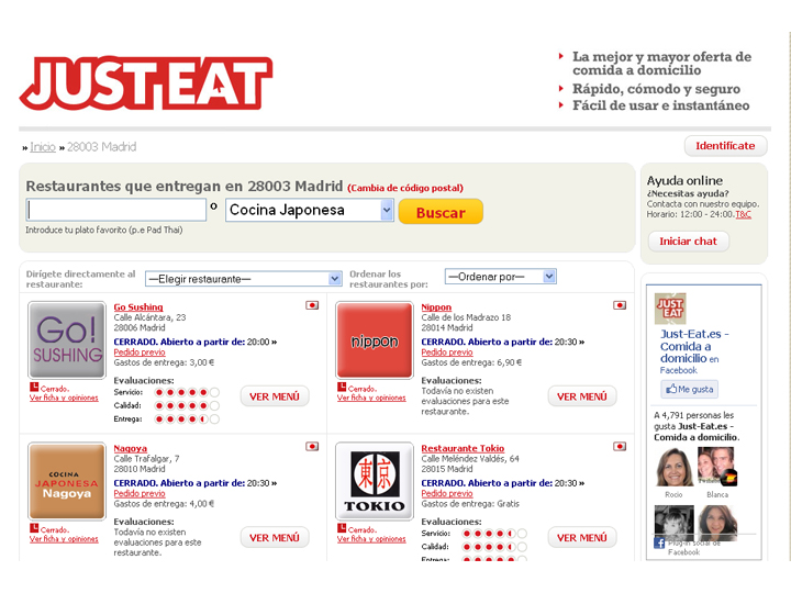Just-Eat propone a los usuarios una forma fácil, sencilla y completamente gratuita de pedir comida a domicilio a restaurantes de la zona en la que vivan.