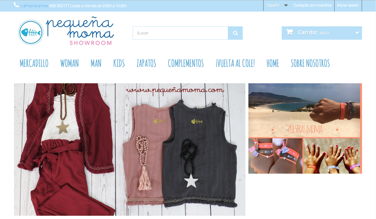 Pequeña Moma es una tienda online de complementos, artículos para el hogar, calzado y moda para toda la familia. Con un estilo propio ofrece artículos de calidad de proveedores nacionales y locales, apostando por la originalidad y cuidando del más mínimo detalle.