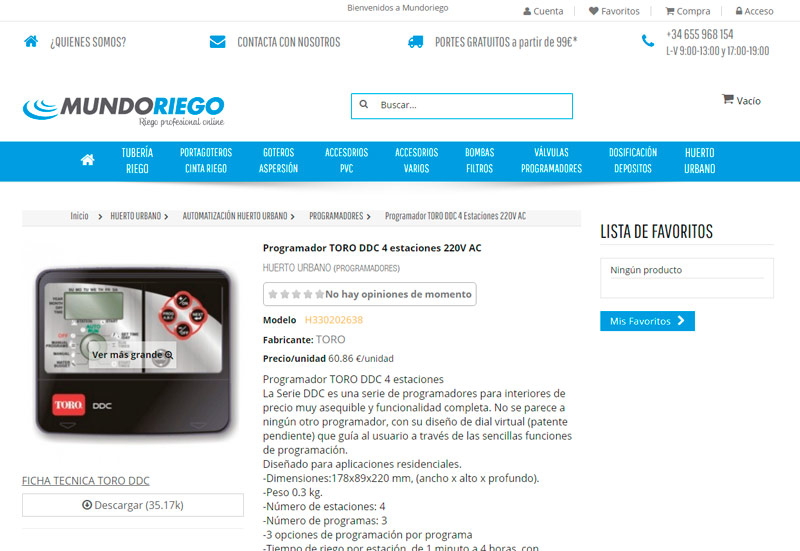 El servicio de atención al cliente de Mundoriego está operativo tanto en horario de mañana como de tarde para atender de manera inmediata cualquier duda que el consumidor presente sobre cualquiera de los artículos y su funcionamiento.