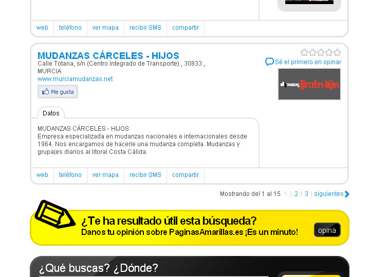 Por ejemplo, empresas de mudanzas en Murcia, mostrará un listado de empresas y un enlace a su ficha de información.
