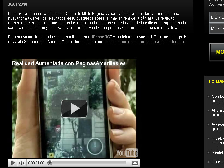 Cada vez más usuarios utilizan su teléfono móvil para navegar por la Red y por eso las empresas están empezando a adaptar sus portales a este formato. Esta tecnología ha llegado también a PaginasAmarillas.es y da la oportunidad a las empresas de contratar un anuncio en la aplicación móvil.