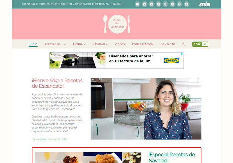 En la web encontramos diferentes secciones, siendo las más importantes las de recetas de cocina y la tienda online, esta última inaugurada hace escasos meses.