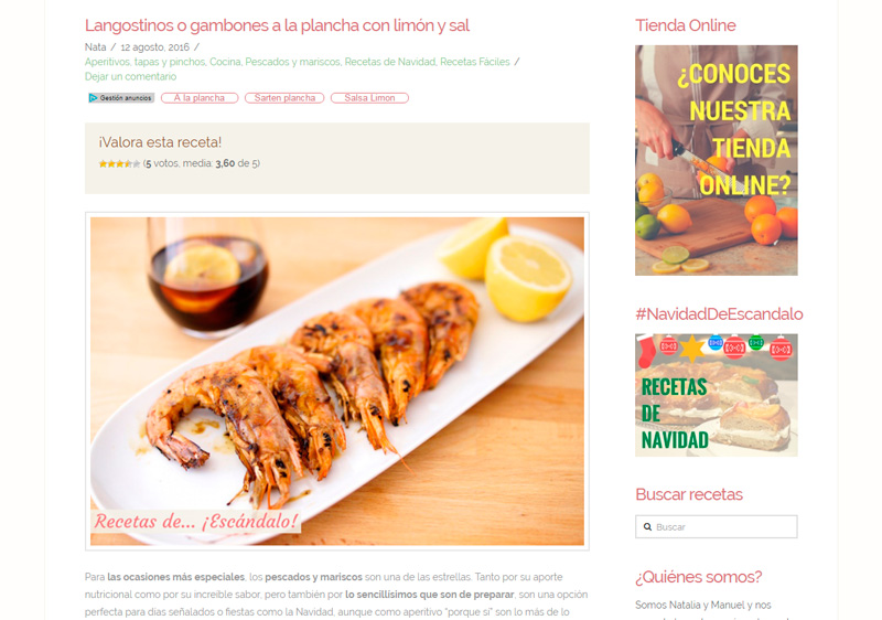 Con poco más de dos años de vida recetasdeescandalo.com ha sabido ganarse el interés y fidelidad de multitud de usuarios. Sus ricas recetas, la completa explicación para elaborarlas y la sencillez de las preparaciones han sido claves para alcanzar el éxito.