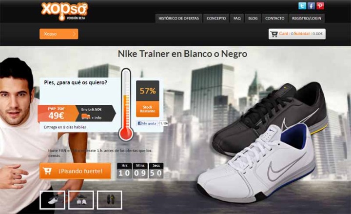 Xopso muestra el stock disponible en tiempo real y una cuenta atrás con el tiempo del que dispone el usuario para hacer su compra. Además, se centra en una única oferta diaria, lo que le permite ofrecer a los usuarios productos más exclusivos.