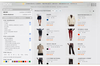 YOOX.COM no solo es una tienda virtual posicionada claramente en la venta de moda, con más de 3 millones de visitas al mes sino que también, consciente del panorama actual, se ha convertido en proveedor de tecnología de marcas internacionales como Armani, Diesel o Marni a través de su empresa Yoox Services, fundada para administrar los sitios de Internet de las grandes firmas del prêt-à-porter.