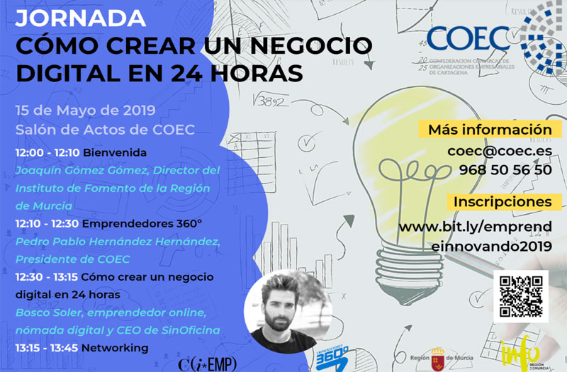 Además contaremos con una ponencia de Bosco Soler, knowmada digital, CEO de SinOficina y protagonista del reto “12 proyectos digitales en 12 meses e invirtiendo menos de 24 horas para el lanzamiento de cada uno de ellos”, que mostrará cómo podemos lanzar una primera versión de nuestro negocio digital con un presupuesto escaso y empleando el menor tiempo posible.