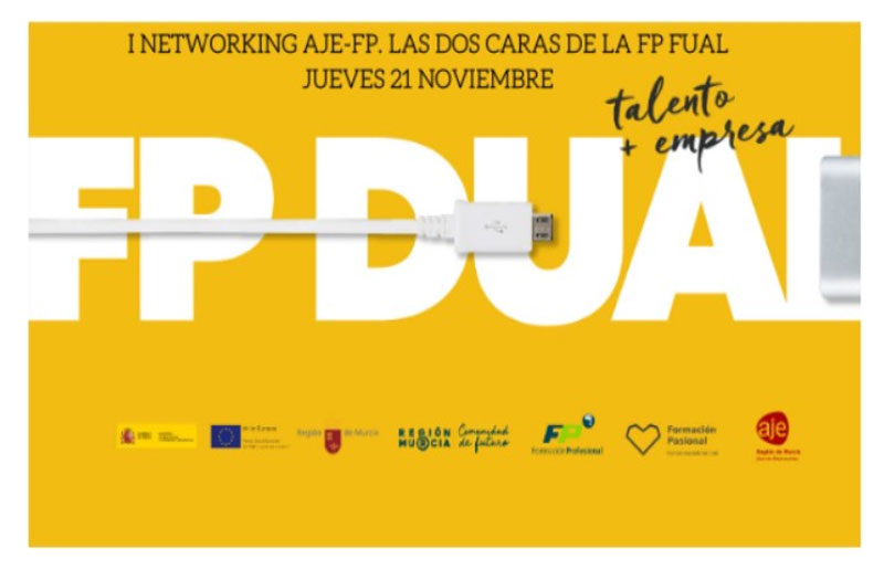Desde AJE Región de Murcia, con la colaboración de la Consejería de Educación y Cultura, presentamos el I Networking AJE-FP, donde conoceremos Las dos caras de la FP Dual y uniremos el mundo de la FP con el de la empresa y sus alumnos.