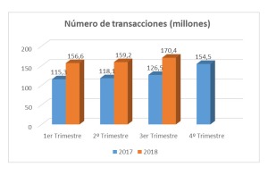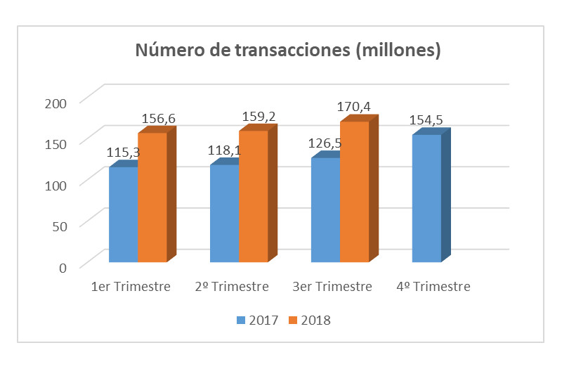 Estos datos reflejan un total de 170,4 millones de transacciones, con un 34,7 % de aumento respecto a 2017.