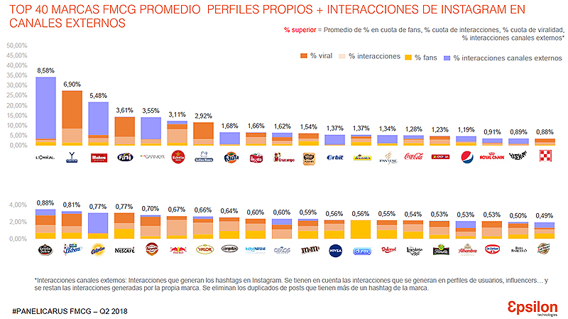 Top 40 marcas FMCG promedio perfiles propios+ interacciones de Instagram en canales externos.