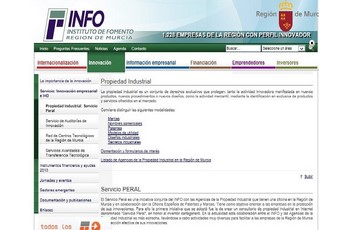 El servicio Peral es una herramienta gratuita que la Comunidad Autónoma ofrece desde el año 2001 a empresas y particulares de la Región, a través del Instituto de Fomento (Info), para informar sobre la propiedad industrial y poder realizar solicitudes de registro de patentes, modelos de utilidad, marcas, nombres comerciales y diseños, facilitando un enlace entre la empresa y la Oficina Española de Patentes y Marcas (OEPM).