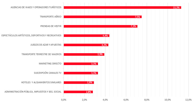 El sector turístico vuelve a liderar el comercio electrónico, con un 11,3% de la facturación global