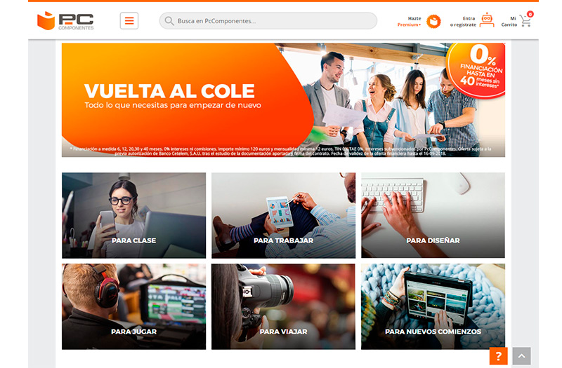 Esta campaña de vuelta al cole, que se extenderá hasta el 16 de septiembre, cuenta con su propia sección dentro de la web con la idea de facilitar a los usuarios que encuentren lo que buscan, ya que lo más vendido en la campaña de 2017 fueron los portátiles, discos duros y tablets. Los portes son gratuitos para pedidos de 150€ o más (hasta el 31 de agosto). PcComponentes ofrece, además de descuentos que alcanzan el 30%, financiación hasta en 40 meses al 0%.