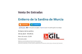 La empresa Sillas Gil, a través de ticketea.com, es la encargada de la venta de sillas en Internet para ver el desfile del Entierro de la Sardina. Un total de 800 asientos están a la venta en la página web www.eventosgil.com desde el pasado viernes 15 de abril, donde cada usuario podrá comprar un máximo de 10 sillas. Este sistema se extenderá en un futuro a otros eventos como las procesiones de Semana Santa.