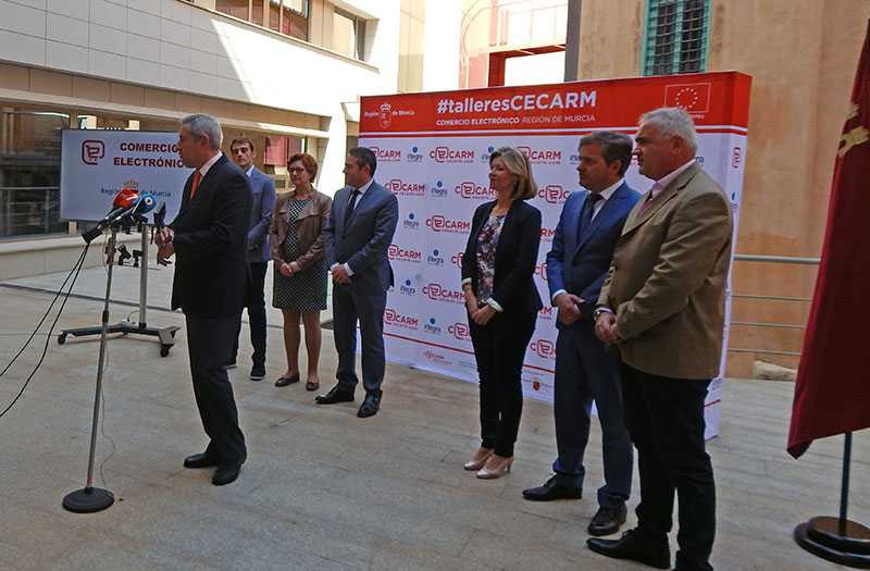 A las 10:50 de esta mañana, el Consejero de Hacienda de la Comunidad Autónoma, Fernando de la Cierva, acompañado por los Alcaldes de los municipios de Alcantarilla (Joaquín Buendía), Blanca (Ester Hortelano), Fuente Álamo (Antonio Jesús García), Jumilla (Juana Guardiola) y Moratalla (Jesús Amo), y el Director General de Informática, Patrimonio y Telecomunicaciones, Juan José Almela, ha presentado los 42 talleres que la Fundación Integra va a realizar dentro del proyecto Cecarm en 25 municipios de la Región desde mayo a noviembre para aumentar la capacitación de pymes y autónomos sobre comercio y negocio electrónico y proporcionar una visión de lo necesario para montar un negocio ‘on line’ o mejorar uno ya existente.