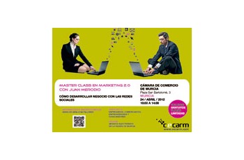 La Master Class "Marketing 2.0: Cómo desarrollar negocio con las redes sociales" tendrá lugar el próximo 24 de abril de 10:00 a 14:00 horas en la Cámara de Comercio de Murcia.