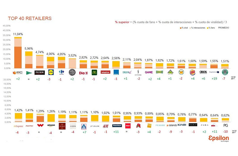 El Panel Icarus, elaborado por Epsilon Technologies, analiza trimestralmente las redes sociales de 119 empresas del retail, en concreto el número de seguidores, las interacciones conseguidas y el engagement, con el principal objetivo de detectar oportunidades de mejora.