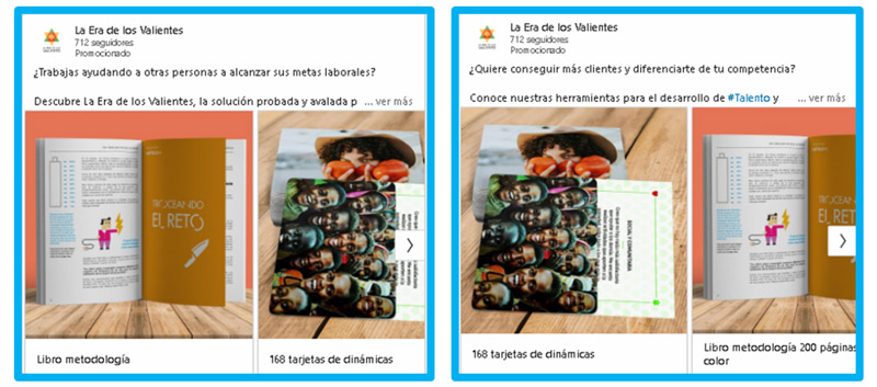 Ejemplo de variaciones de anuncio. El formato de la derecha tuvo + 10 % de conversión respecto al de la izquierda