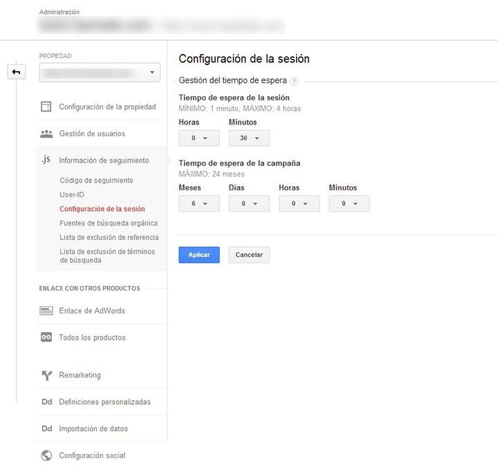 Podemos citar como destacado la configuración del tiempo para contabilizar a un usuario único. Por defecto, Analytics contabiliza dos sesiones separadas por más de 30 minutos del mismo usuario como dos usuarios únicos, algo que no se ajusta en algunos casos a los entornos reales de trabajo. Para modificar este valor anteriormente había que implementar un código adicional al código de seguimiento. Con la nueva versión podemos seleccionar un rango entre 1 minuto y 4 horas, con lo que aproximar más a la realidad de nuestro negocio, o ayudando a los anunciantes que pagan sus tarifas por visitas únicas, aunque por defecto sigue estando en esos 30 minutos. Para hacerlo basta con ir al menú “Configuración de la sesión” dentro de la opción “Información de seguimiento” que encontramos en el panel de administración de Google Analytics.