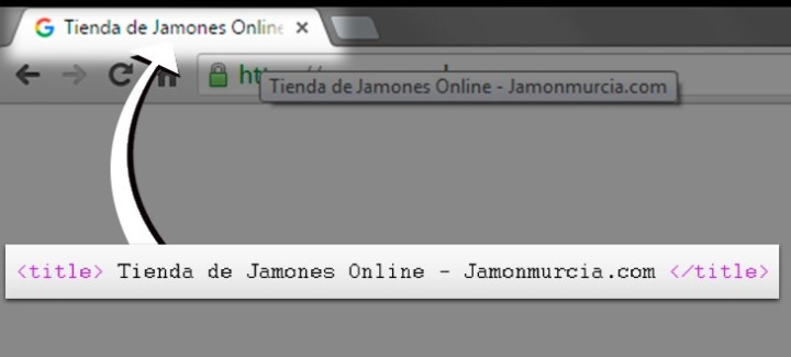El título que tenga la portada será el título que tenga la página web. Debemos tener en cuenta que tenemos hasta 70 caracteres para ser creativos y crear un título interesante. Deberá tener la palabra clave principal y la marca de la empresa o del dominio. Por ejemplo, si el dominio es www.jamonmurcia.com y queremos posicionar Tienda de Jamones Online, el título debería ser: “Tienda de Jamones Online – Jamonmurcia.com”.