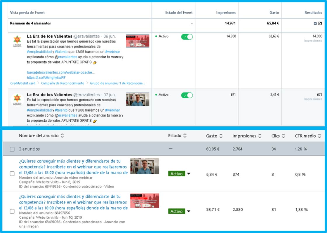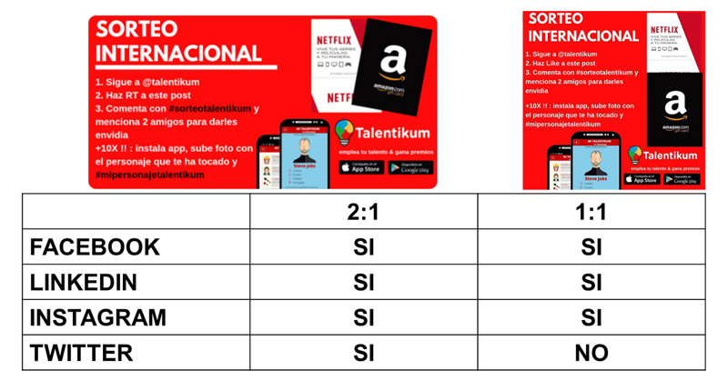 Ejemplo de cómo el mismo anuncio, cambiando vídeo por imagen es penalizado en su alcance en distintas plataformas