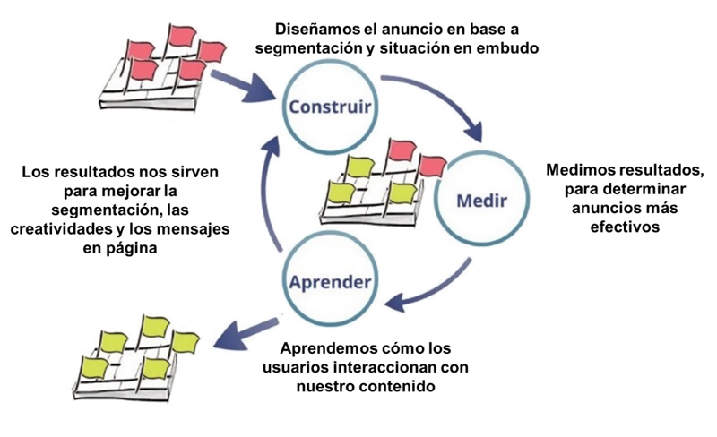 Por eso, es imprescindible utilizar una metodología que nos permita de forma sistemática identificar las mejores combinaciones a la vez que descartamos las peores. Para ello, vamos a utilizar la Metodología Lean Startup para construir nuestro anuncio.