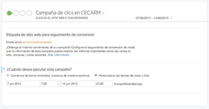 En primer lugar, deberemos elegir un nombre para nuestra campaña. Además, tendremos que indicar si queremos que se publique de forma inmediata o seleccionar las fechas de inicio y final de la publicación.
