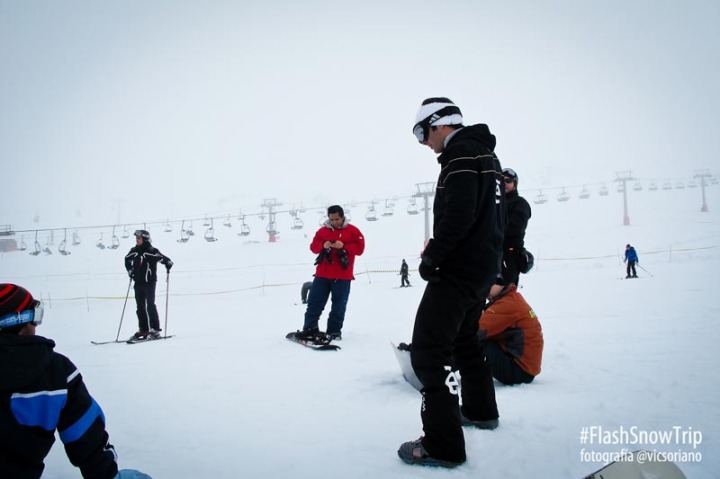 Una vez recogidos los forfaits (pase de día para el uso de telecabina y remontes que suben a las pistas), llegamos a la zona de Borreguiles, donde Edu, uno de los profesores de la Escuela Europea, se encargó de impartir la divertidísima clase de snowboard, de tres horas de duración, donde recibimos las nociones básicas para practicar este deporte. A través del hashtag #flashsnowtrip pueden verse todas las fotografías y vídeos que se fueron subiendo durante todo el día.