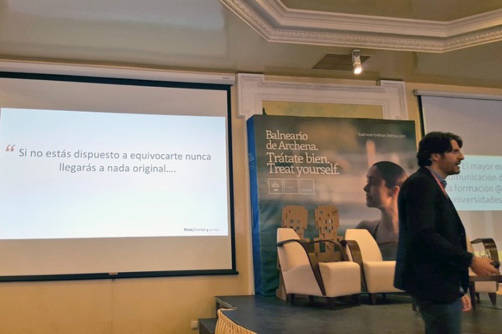 La mañana estaba siendo de lo más completa y llegó el momento de David Segura, especialista en Creatividad e Ideas de negocio. Según David, “una startup no es un sprint, sino una carrera de fondo”. Además, añadió que “el fracaso es inevitable, pero no te acostumbres a él, ni te creas que no tiene consecuencias. Pero en el fondo, si no estás dispuesto a equivocarte nunca llegarás a nada original”. En relación a la creatividad comentó que “no se trata de tener simples ideas, sino de la creatividad de esas ideas, al igual que no se trata de utilizar la tecnología sino la creatividad con la que utilizamos esa tecnología y el planteamiento tecnológico”. Prosiguió aseverando que “la creatividad es el arte de gestionar el cambio, mediar en conflictos y resolver problemas. En definitiva: emprender”.