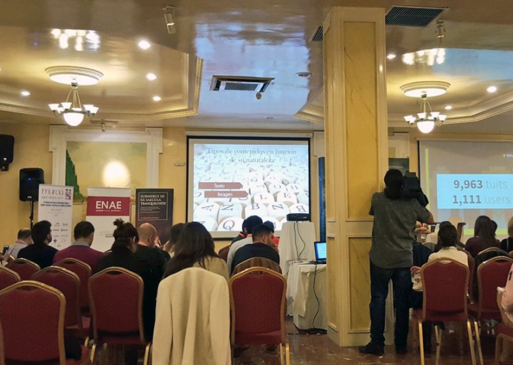Justo cuando el evento pasaba de los diez mil tuits, Javier Abrego tomó la palabra para hablar de Analítica Web y analítica de redes sociales. Javier es CEO de la empresa Tweet Binder. Indicó en su conferencia la necesidad de medir bien para posteriormente utilizar esos datos para vender más. Javier defendió el mercado de la mención en Twitter como un negocio global muy rentable. En su ponencia habló de la analítica del hashtag #Murciaquedigitaleres casi en directo, en la que se pudieron ver los 10.171 tuits publicados hasta el momento. Como consejo Javier indicó que “cuando midamos algo en Twitter con alguna herramienta, intentad abarcar lo máximo posible, hashtag, nombre del evento, nombre de la cuenta, etc., de forma que no se escape ningún resultado”.