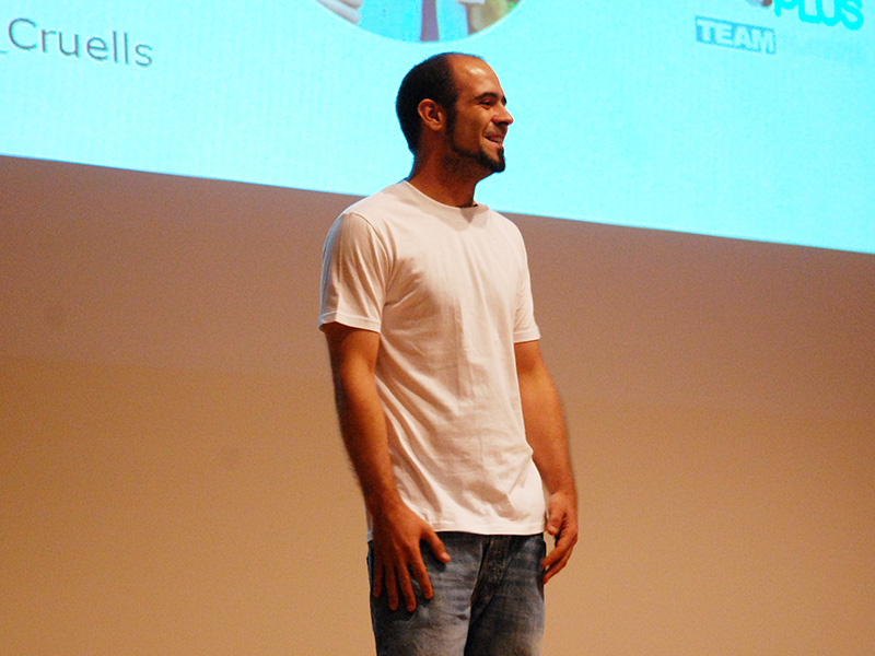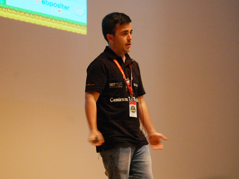 Marc apareció por el escenario deslizándose, literalmente, con su monopatín, lo que sirvió para crear expectación y captar la atención de los asistentes. En su conferencia Marc hablaría de cómo scrapear contenido para nuestras redes de blogs. Ya advirtió al comenzar su ponencia que todo lo que íbamos a ver en los siguientes 60 minutos era ilegal.
