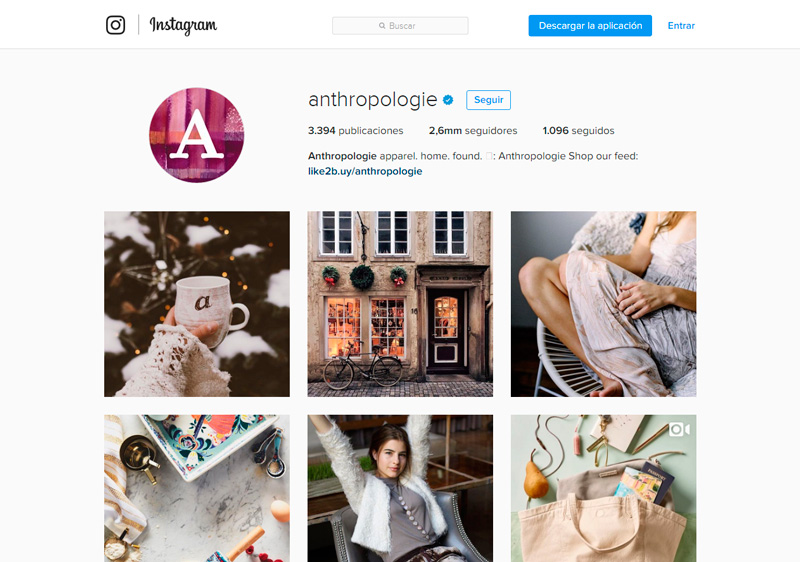 Por ejemplo, la cuenta de Instagram de ‘Anthropologie’ ha logrado un buen equilibrio con sus imágenes. Sus seguidores gustan de imágenes divertidas, así como de negocio.